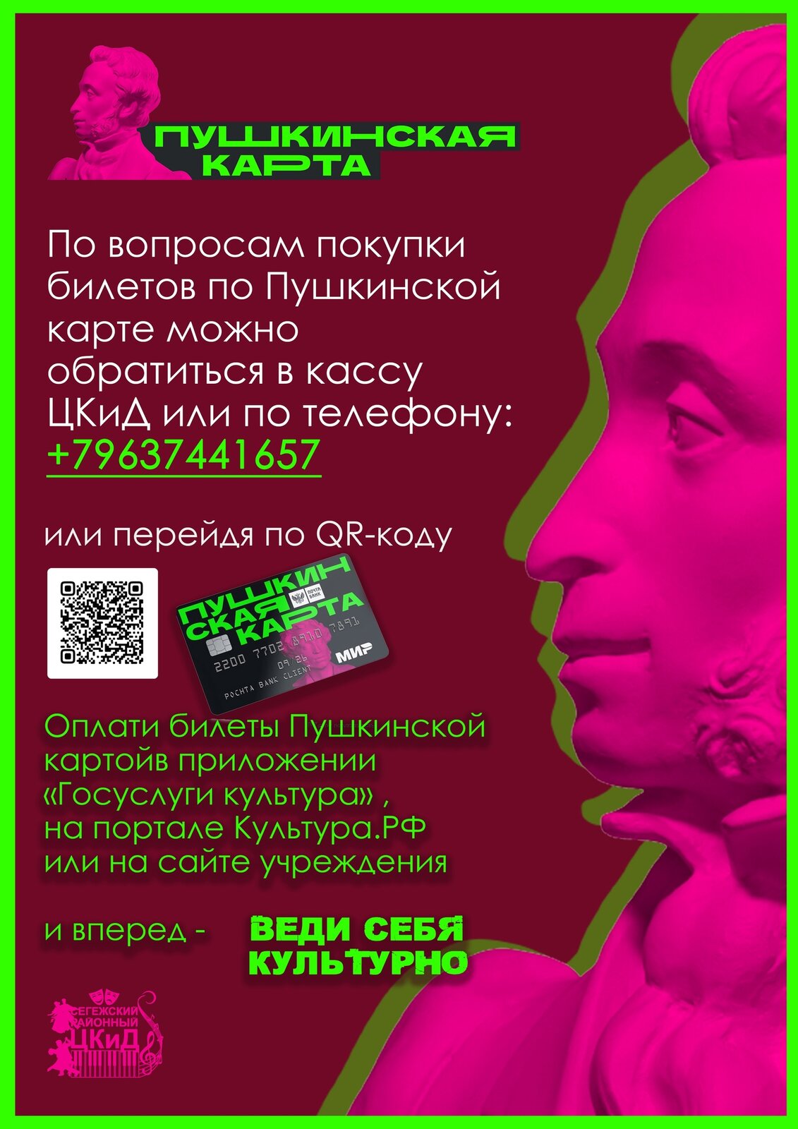 ДРУЗЬЯ! ПРИОБРЕСТИ БИЛЕТЫ НА НАШИ МЕРОПРИЯТИЯ ВЫ МОЖЕТЕ ПО ПУШКИНСКОЙ КАРТЕ!